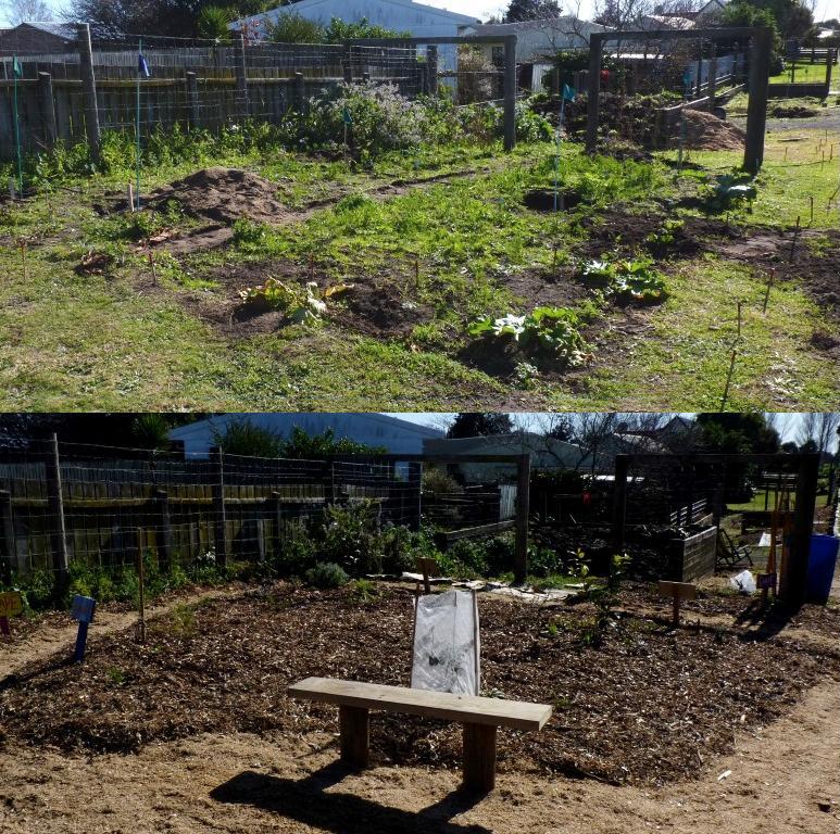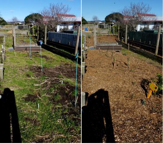 Much of this enormous task was completed on the day, with one whole section completely finished (yay!) but quite a few areas remained uncovered by both compost and mulch, and were completed by Rock members in the week following.