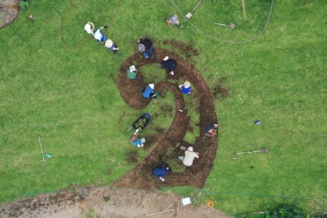 After lunch, the drone shows us taking away the grass and the final shapes emerging….