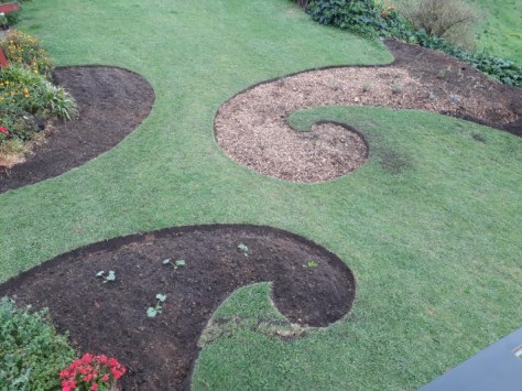 These koru shaped gardens will get planted out over time creating privacy and allowing access.
