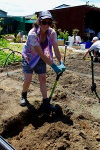 Lora Scully led a workshop on how to double dig a garden bed.